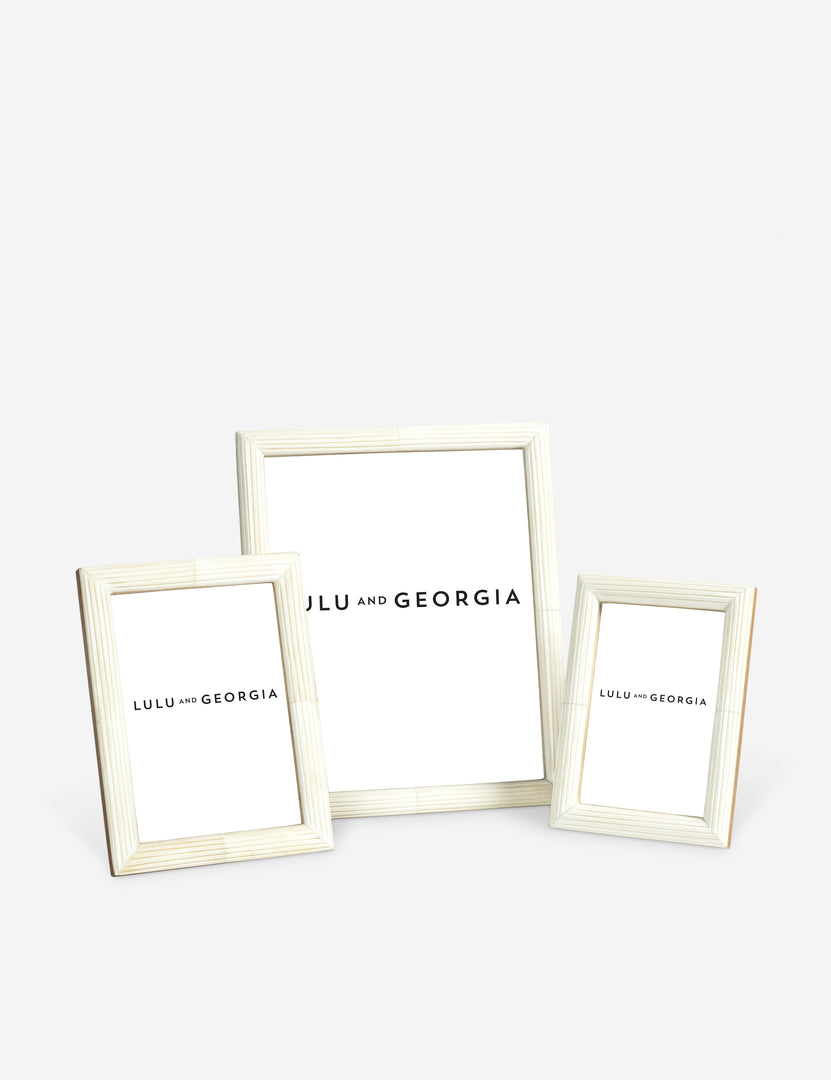 Style a personal touch that elevates the room. Whether on your desk or kitchen counter, this picture frame will help you bring mementos to the mix with a polished look and feel. The white bone features etched lines for added texture in any curation.