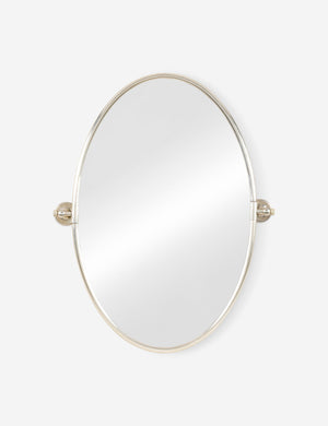 The Caferro mirror pairs a timeless look with industrial detailing in a clean, modern design. An oval metal frame softens the silhouette, while sleek bracket mounts offer a refined touch. Style this decorative mirror in a hallway, bathroom, or bedroom to brighten the space with a polished finish.