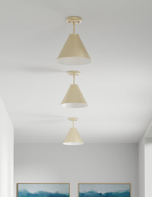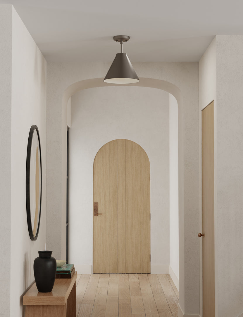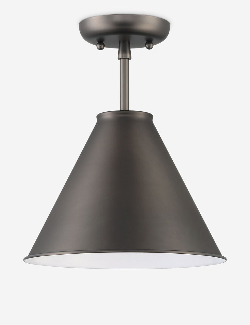 Enhance your decor with a polishing touch. The Cannon semi-flush mount light casts a timeless silhouette set for sophistication. With a slender stem and tapered metal shade, the low profile of this overhead fixture is great for hallways and small-space design.