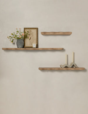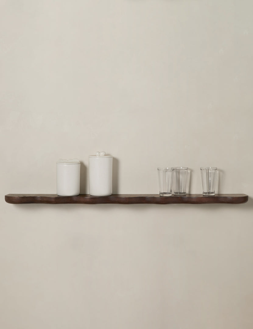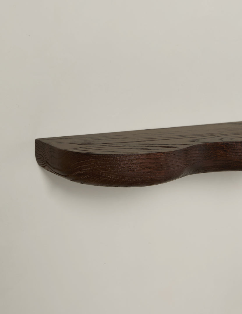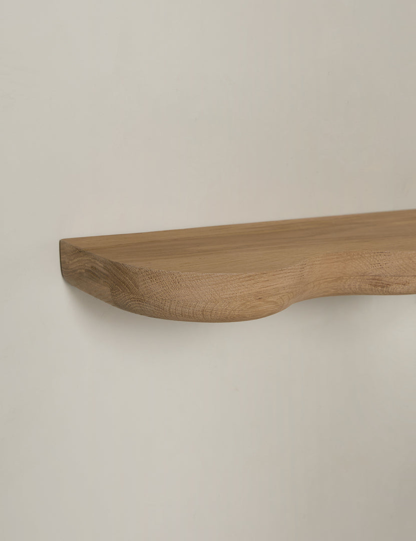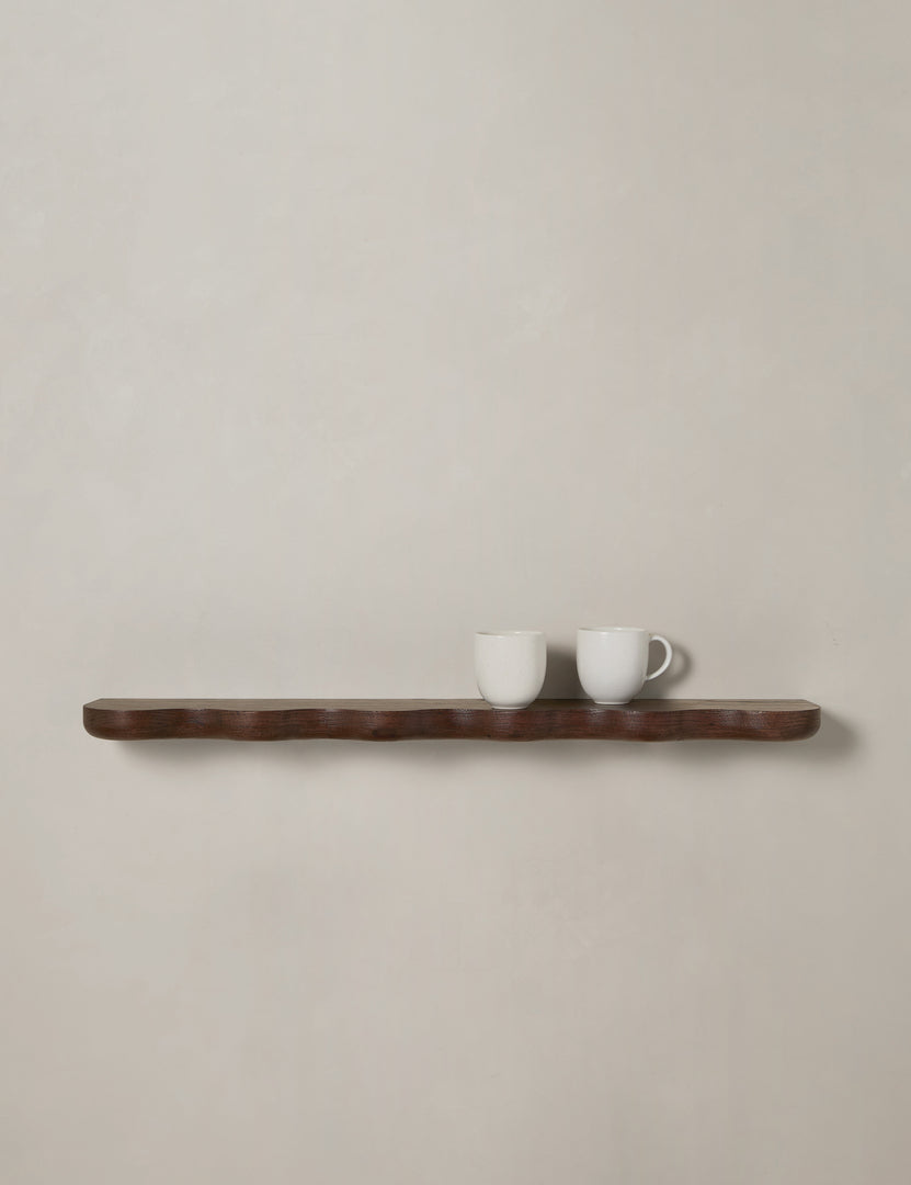 Add an artful touch of storage to your walls with the Cario shelf. The wavy shape and rounded edges bring a sculptural quality to the solid oak, styling a chic and versatile touch for everything from corralling accessories to staging a modern vignette. We love this piece in a home office or powder room for that extra bit of surface space with a stylish edge.