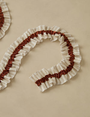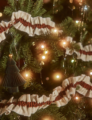 A ruffled twist on traditional trim, this garland features soft linen satin for a playful yet elevated holiday accent. Drape it along a banister, mantel, or tree to bring in a bit of texture and charm.