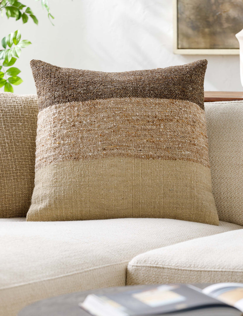 Ground your space with sophistication. The trip-stripe design on this versatile accent pillow offers warmth and texture in an earthy palette. This pillow mixes neutral tones with contrast to ensure soft impact in any edit.