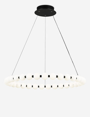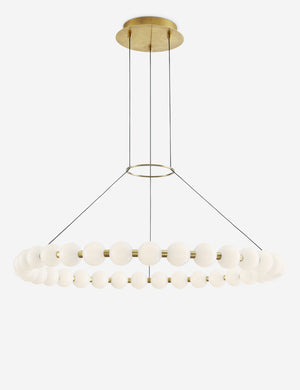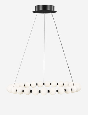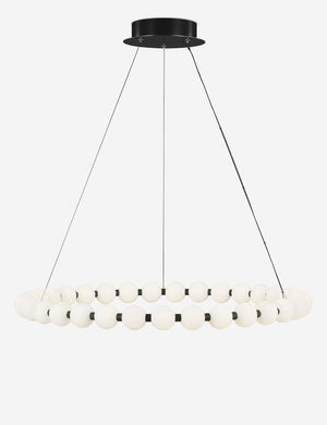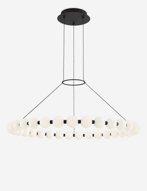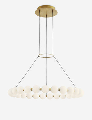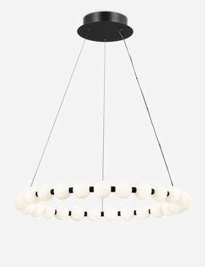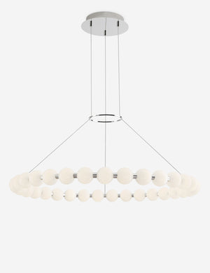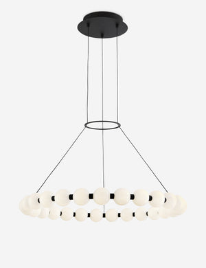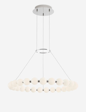 The Caterina chandelier creates splendor with a modern touch. Its sculptural silhouette features a ring of milk-glass globes for statement appeal overhead. The integrated LED technology offers energy efficiency with a long lifespan—plus, its dimmable design lets you set the tone for a brilliant interior.