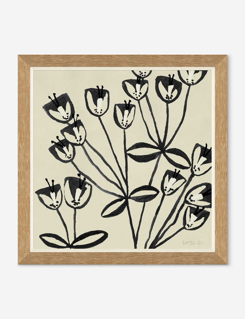 Nothing dresses up a room like flowers. In this minimalist wall art by Susan Hable, floral silhouettes fill the frame with an organic rhythm and understated impact—a chic touch of art perfect for modern wall decor.