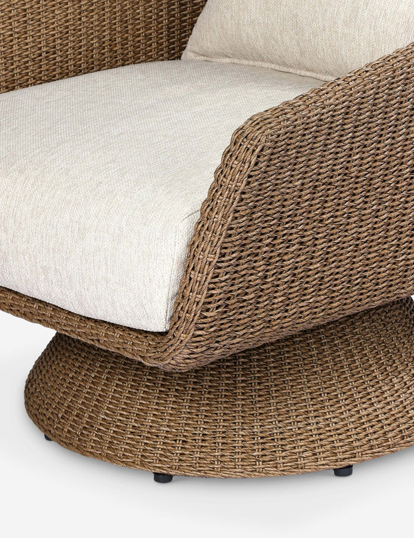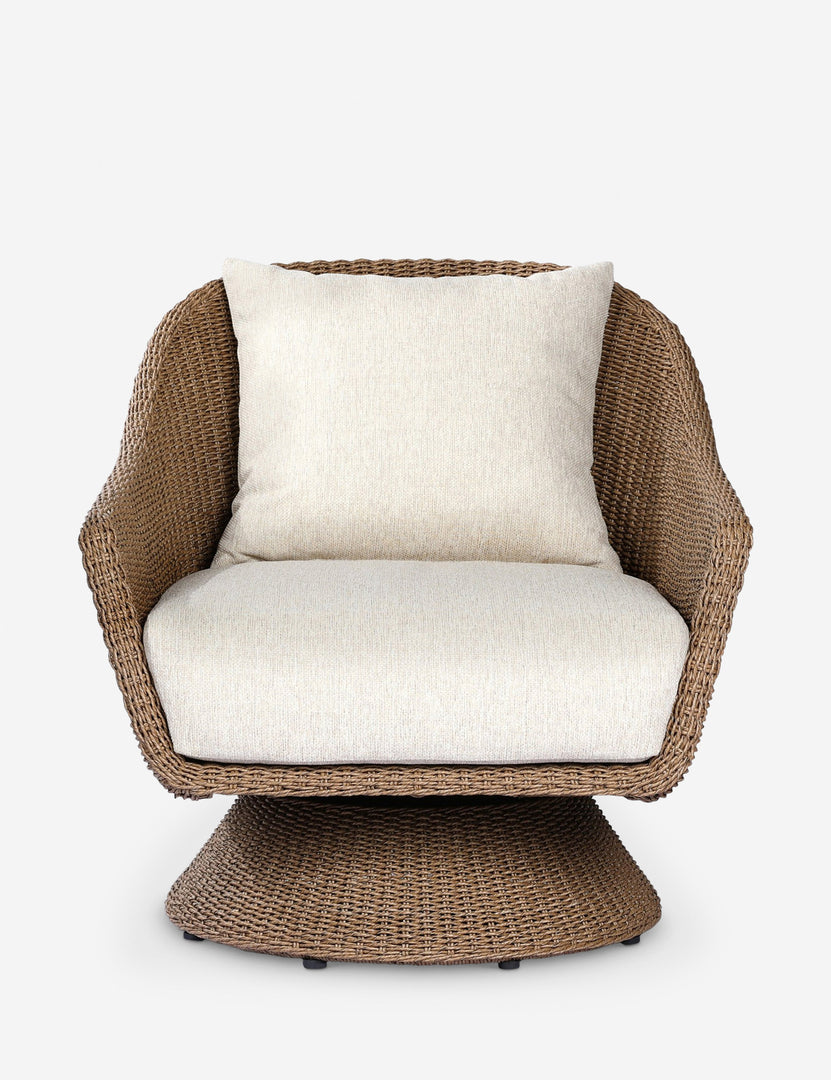 A fresh take on a classic form, the Chauncey chair draws from mid-century tulip designs with a textural twist. The woven shape offers sculptural warmth, while plush performance cushions and a smooth swivel motion invite all-day lounging. Style this outdoor lounge chair on your patio or terrace for the perfect place to kick back and enjoy the sun.