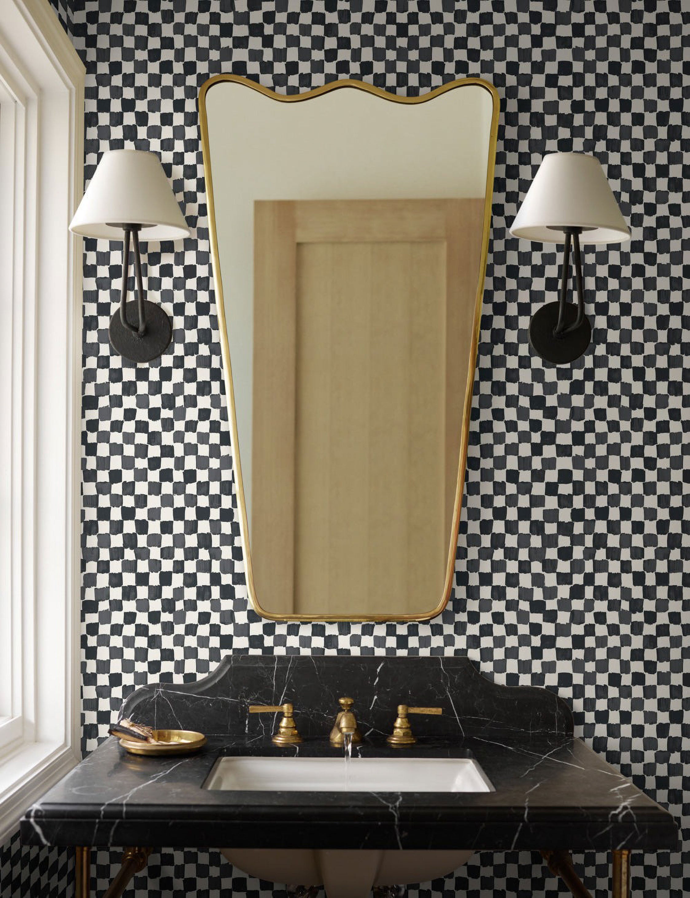 Create a bold, artful look with this checkerboard wallpaper design. This home wallpaper features hand-drawn two-tone checks to offer a balanced yet dynamic element that can fold into any modern look. This piece is from our exclusive Sarah Sherman Samuel collaboration and features all the trademarks of her warm, edited style.