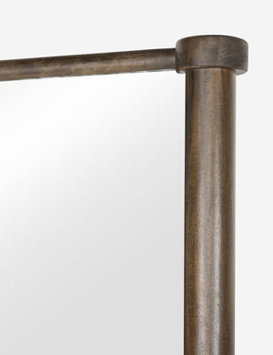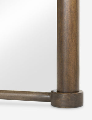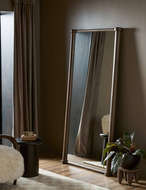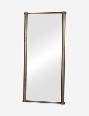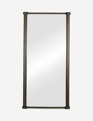 Striking in its simplicity, the Christos mirror brings a minimalist edge to classic Art Deco design. A wood frame with cylindrical posts and disc corner detailing offers architectural appeal. With its grand scale and angled legs, this full-length mirror rests flush to the floor, styling an elevated anchor for a bedroom or dressing area.