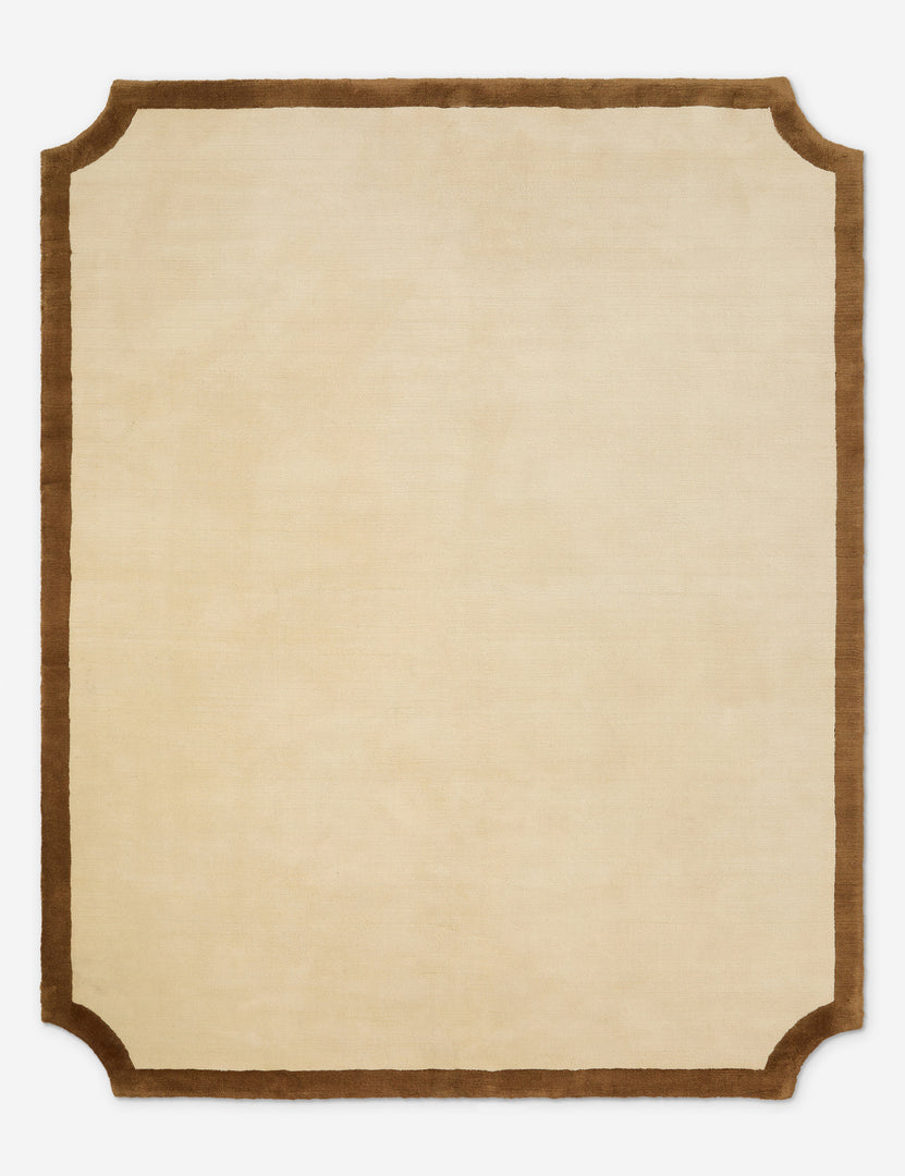 Celebrated designer Jake Arnold's exclusive collection will layer your space in rich texture and quiet luxury. Set a soft tread underfoot with the hand-loomed Clapham wool rug. A bold border highlights the scalloped corners, making an elegant anchor piece for a refined but inviting living room.