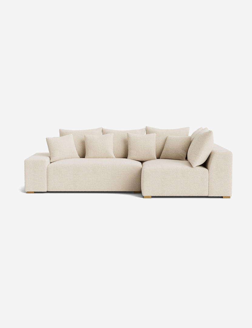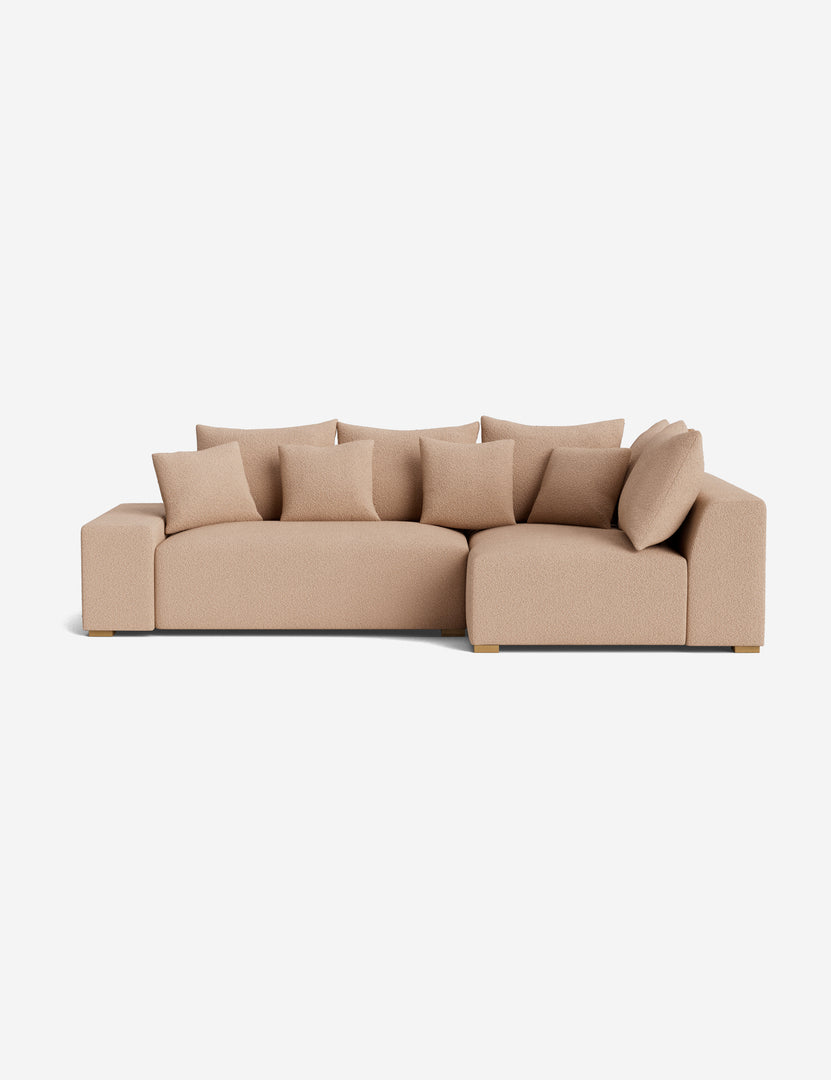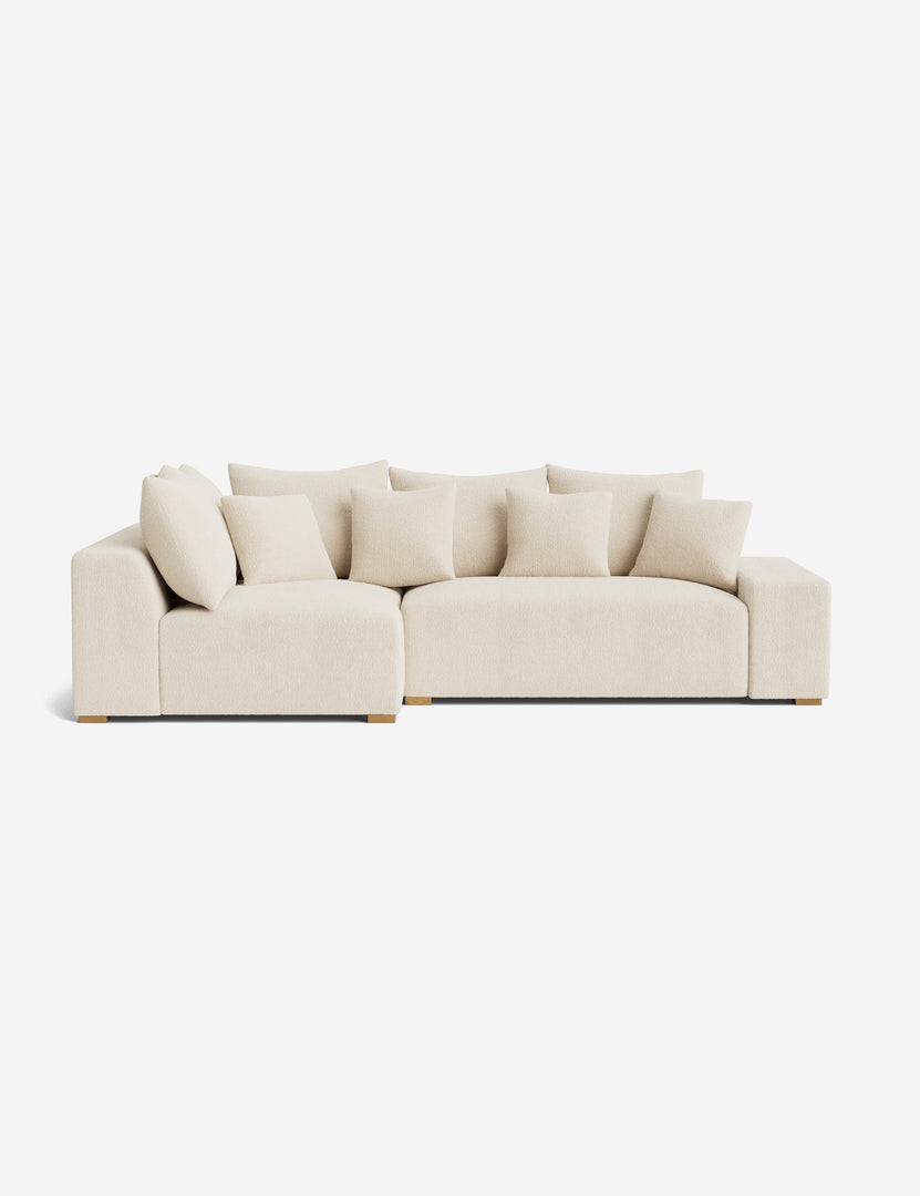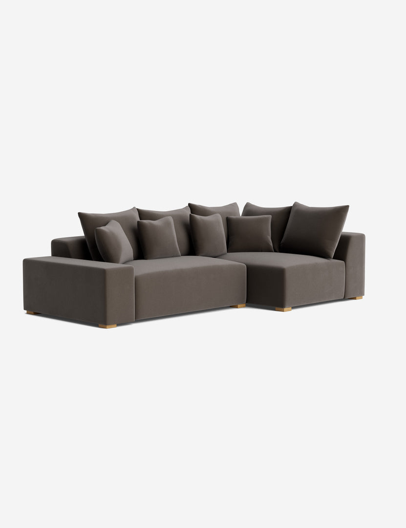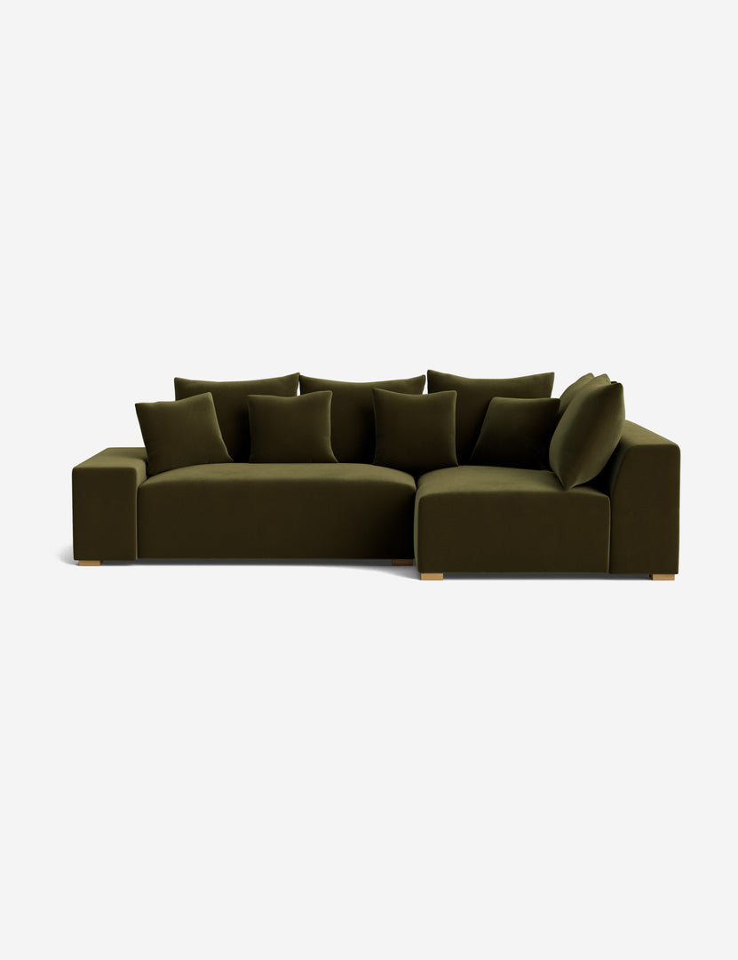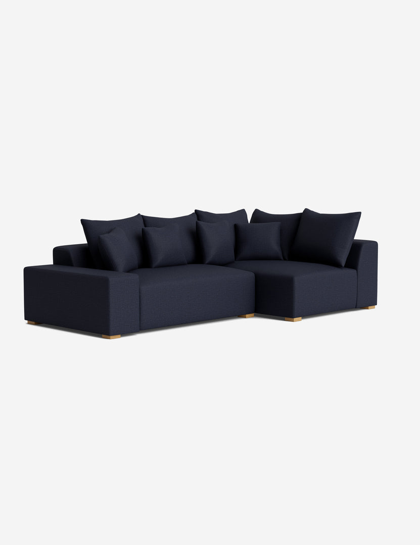 Clean lines define the Clayton sectional sofa, offering a refined silhouette that gently elevates the room. With its crisp body piled in pillow cushions, this modern sectional provides a grounding anchor that folds seamlessly into its surroundings. A beautiful range of fabric options brings a personalized touch to this versatile design.
