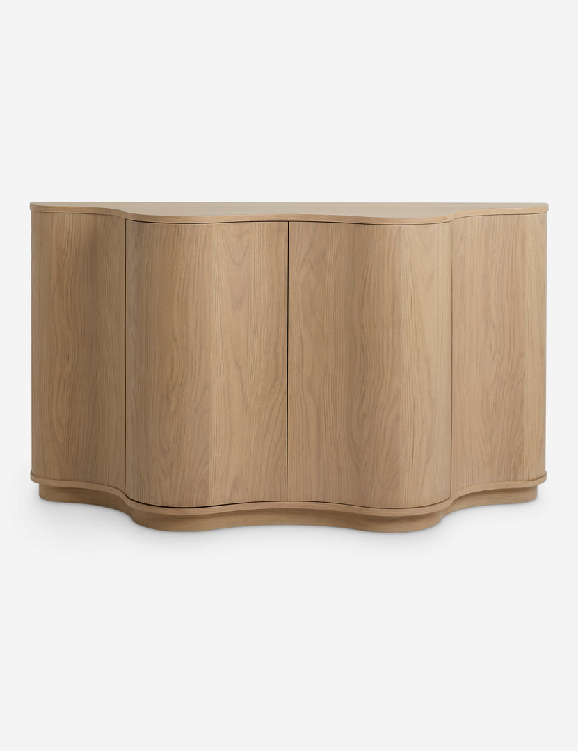 Celebrated for their ceramics and bold designs, Lolly Lolly Ceramics brings their knack for sophistication with a playful edge to an exclusive collection for your entire home. The Cora sideboard offers a striking play of shape with its half-moon design and scalloped front that opens to spacious storage inside. The light wood finish grounds this piece in natural grain warmth, whether as a storage console or dining room cabinet.