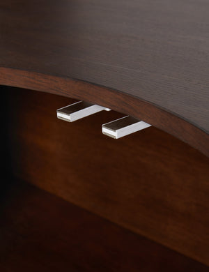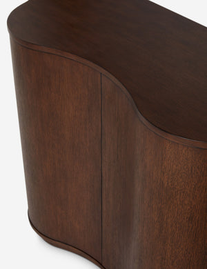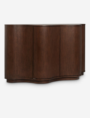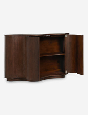 Celebrated for their ceramics and bold designs, Lolly Lolly Ceramics brings their knack for sophistication with a playful edge to an exclusive collection for your entire home. The Cora sideboard offers a striking play of shape with its half-moon design and scalloped front that opens to spacious storage. Natural wood grain grounds this piece in warmth, whether placed as a storage console or dining room cabinet.