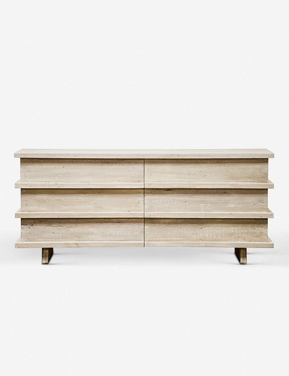 From the neutral gray finish on the reclaimed douglas fir wood, to the edgy modern silhouette—we love it all on this dresser. Six spacious drawers offer plenty of storage, and rectangular plank legs give the piece of bedroom furniture a streamlined, elevated feel. It's the perfect place to prop your favorite oversized art print and a sculptural table lamp.
