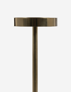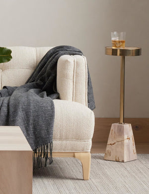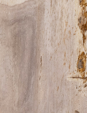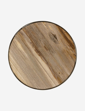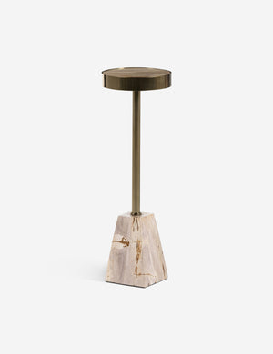 Elevate your edit with a touch of petrified wood with this round side table. Designed with a simple, elegant silhouette, it boasts a slim pedestal base and a thick collar in a brass finish that imparts warmth—the perfect end table to complete a refined sitting area.