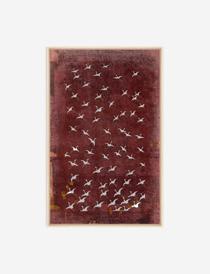 A pattern of cutout cranes sits on a solid field in this re-produced Kimono stencil from the 1930s, bringing a moment of elegance and patina to your wall decor. This unique wall art offers a tranquil focal point or beautiful layering piece for an artfully modern curation.