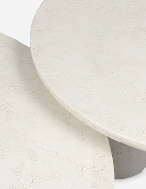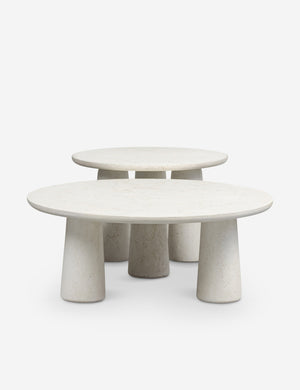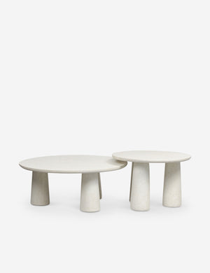 These concrete coffee tables bring texture and movement to your outdoor lounge. Cast in ivory concrete, each table features a rounded top and tapered legs for a soft, sculptural look. Style this nesting coffee table together or place each separately to shape a dynamic outdoor layout.