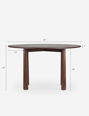 The Dasch dining table brings refined charm to your space with its rounded top and tapered legs. Crafted from solid Acacia with a chestnut finish, this wood table anchors the room in warmth and versatility. Its clean lines and subtle curves strike a beautifully balanced silhouette.
