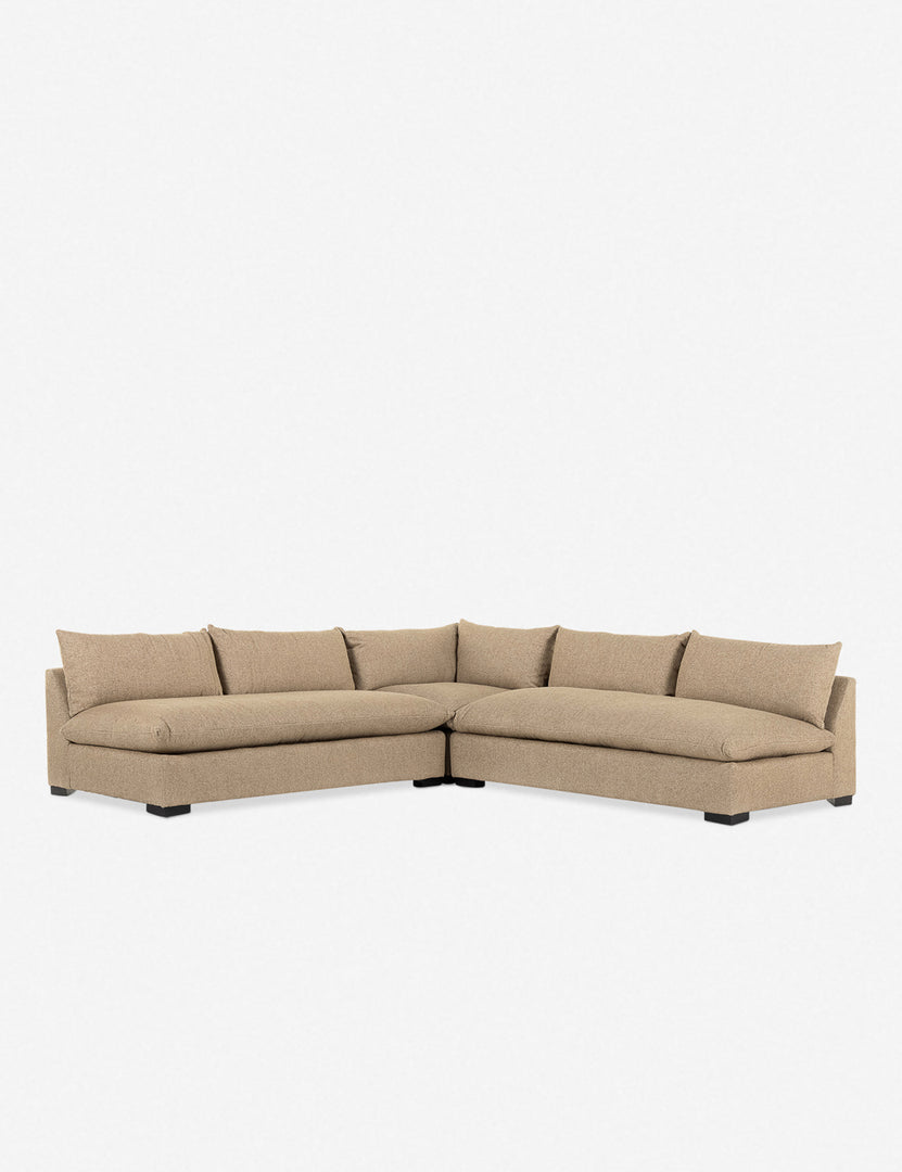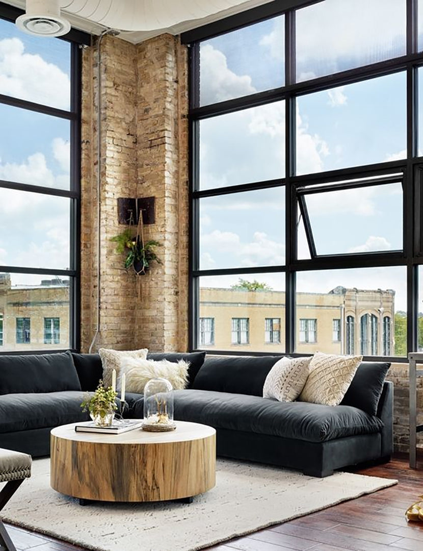 The armless design of this sectional sofa creates an open, inviting look while still feeling chic and modern. Cozy up with plush velvet sectional's loose back cushions with enough space for everyone.