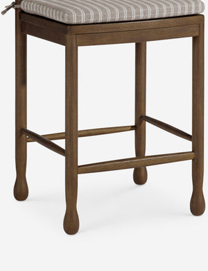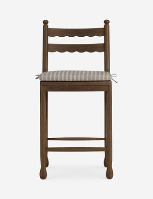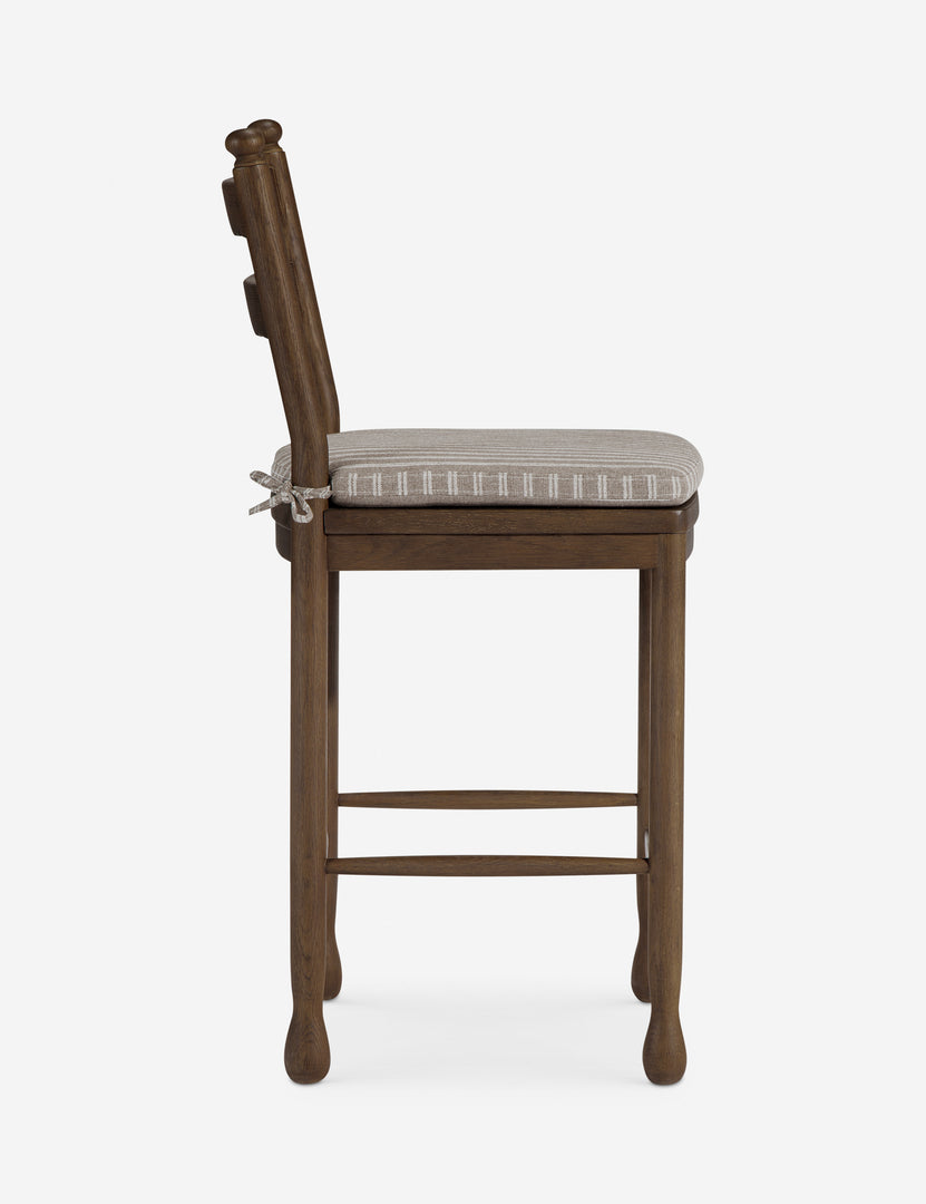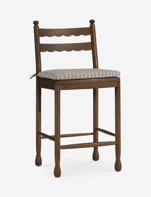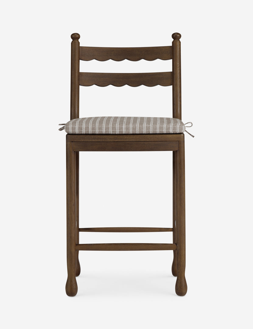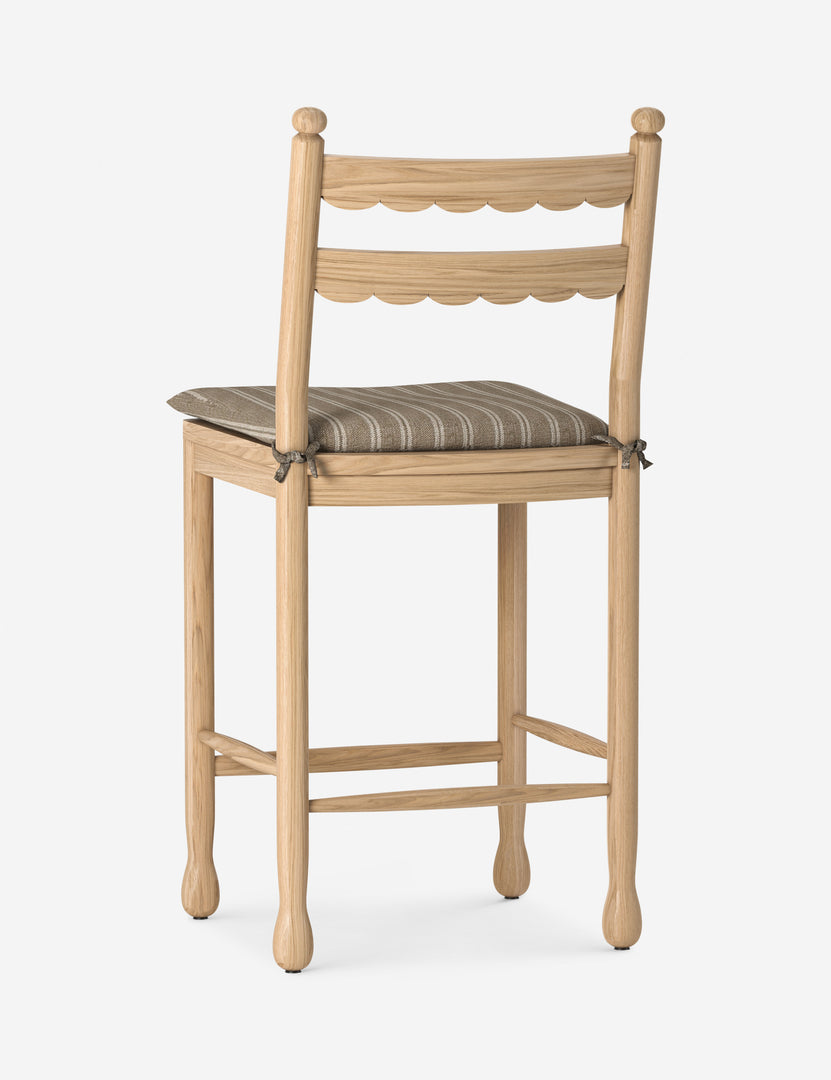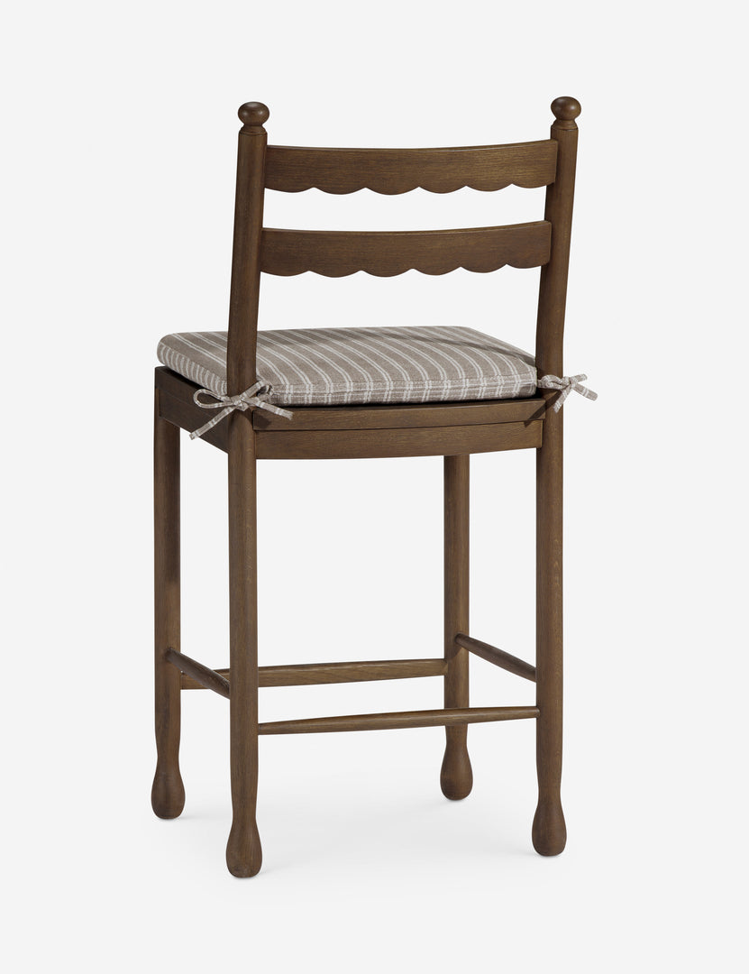 The Declan counter stool brings vintage-inspired charm to your island or counter with its scalloped back detailing and striped cushion for added comfort. This chic stool adds timeless character and an inviting feel to any counter-height setting.