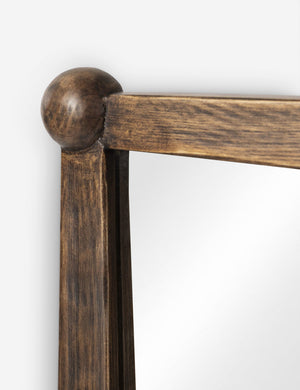 Four Hands brings their exceptional craftsmanship to a timeless collection rooted in Amber Lewis' perennial California style. This framed mirror features tapered pieces of aged pine and bun details, offering rustic warmth with a playful edge. The mirror mounts horizontally or vertically—or you can use the bun feet to lean it on a dresser or tabletop to add depth to a vignette.