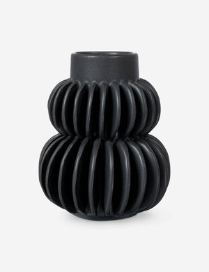This ceramic vase features two rows of half-moon discs fanned around a tapered body, offering dynamic appeal from every angle. The sculptural silhouette of this pleated design is perfect for echoing architectural lines, plus a watertight construction lets you add height and dimension to your table or mantle with fresh flowers.