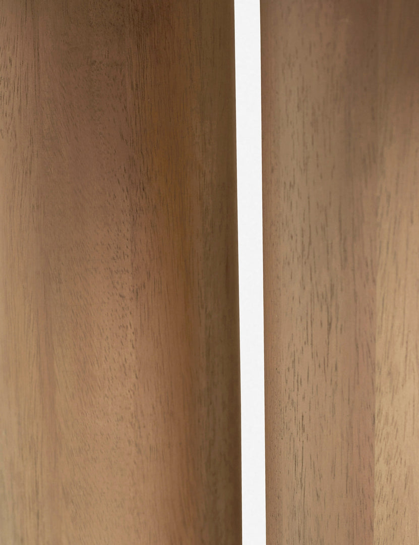 With its pedestal base, subtly recessed tabletop, and ash veneer, this Delta Side Table marries pared-down design with elevated details. The rich woodgrain highlights the natural finish and three clustered columns complement the slim-lined round top. We love curating this wood side table with sculptural and tactile accents.