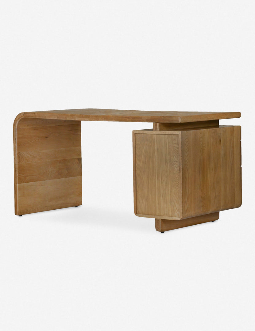 Inspire your workspace with the soft lines of this solid oak desk. With an eye-catching waterfall design, this desk features a spacious desktop and three drawers, including one for file folders. The rich natural grain and round metal pulls offer a refined balanced for your home office style.