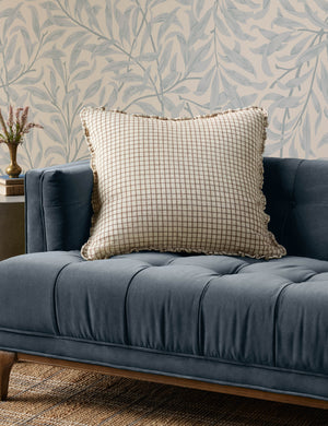 Soft texture meets fresh appeal in this signature pillow collaboration from Chris Loves Julia and Loloi. With its subtle grid and gently ruffled trim, the Dinah throw pillow brings a playful touch of elegance to your space. It’s a lovely accent for cozy bedrooms or a thoughtfully styled living room.