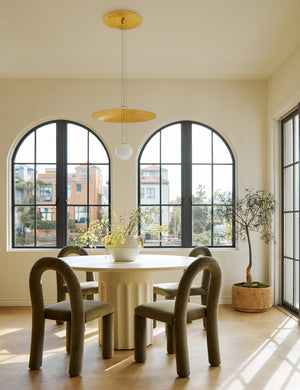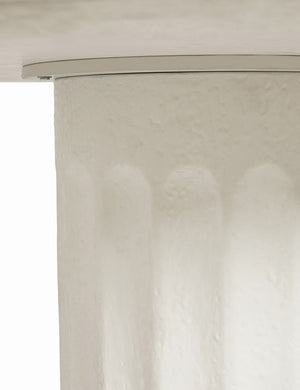 Classical design notes get a modern treatment with this round fiberstone dining table. The textural column-style base supports a polished top to create a refined table design perfect for a kitchen, intimate dining area, or outdoor dining table. This piece is from our exclusive Sarah Sherman Samuel collaboration and features all the trademarks of her warm, edited style.