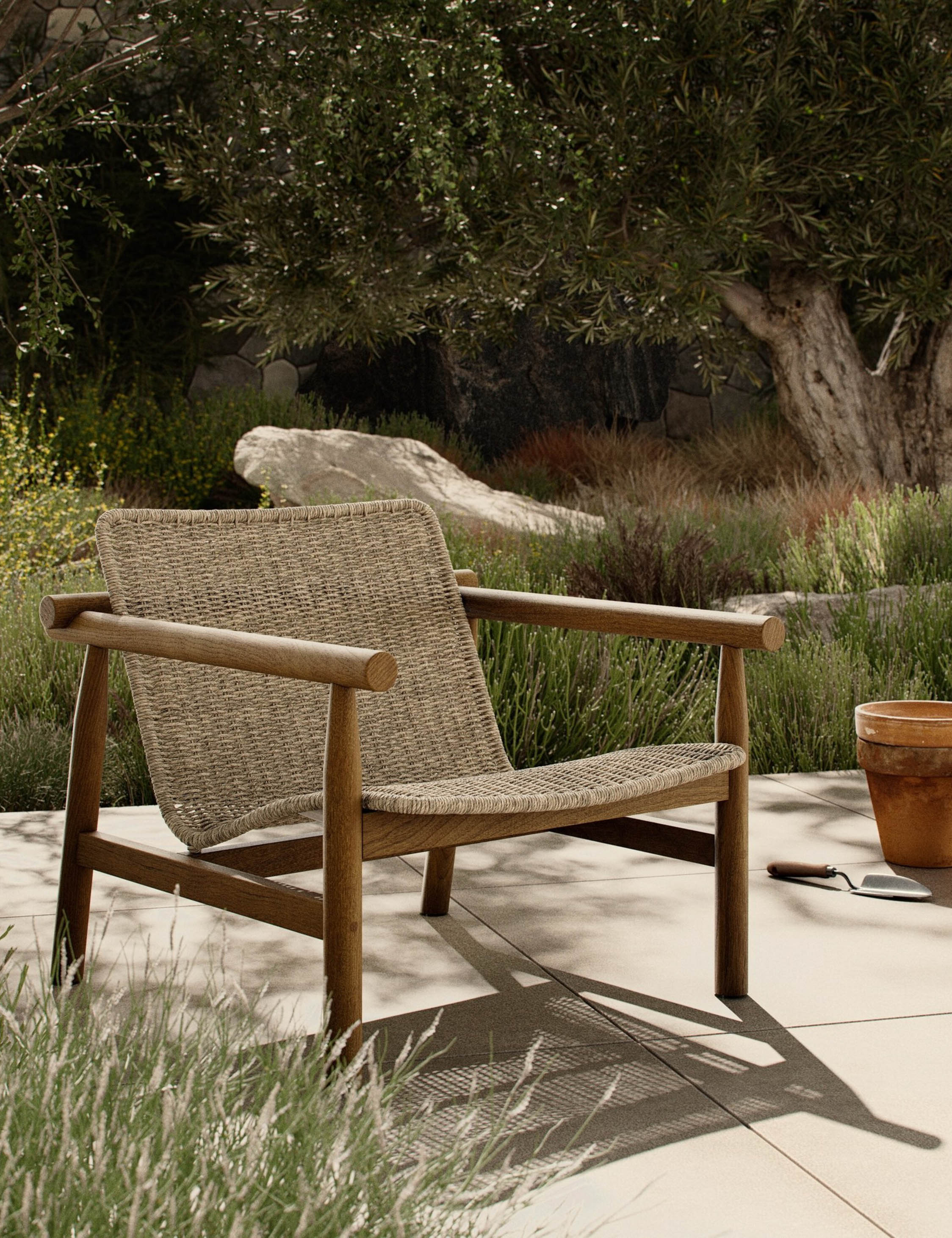 Four Hands brings their exceptional craftsmanship to a timeless collection rooted in Amber Lewis' perennial California style. Simple in design, this modern indoor/outdoor accent chair is a fresh choice for casual seating. Offering impressive comfort with a low-slung, woven seat, and crafted from FSC wood for exceptional quality, this occasional chair works beautifully on a covered porch or in an inviting sunroom.
