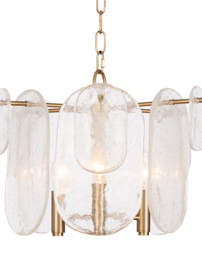 The Echo pendant offers a brilliant statement in light. The layered arrangement of textural glass panes creates a diffused glow that brightens your space with sophistication and warmth. This hanging light creates a striking feature overhead—even when it's not illuminated.