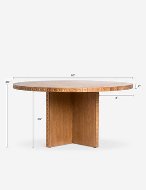 Natural grain impact meets artisan detail in our Edda dining table. The round table features a carved dot trim for a modern feel grounded in organic warmth. Small bun feet lift the piece off the ground for a light, elegant bearing in your room.