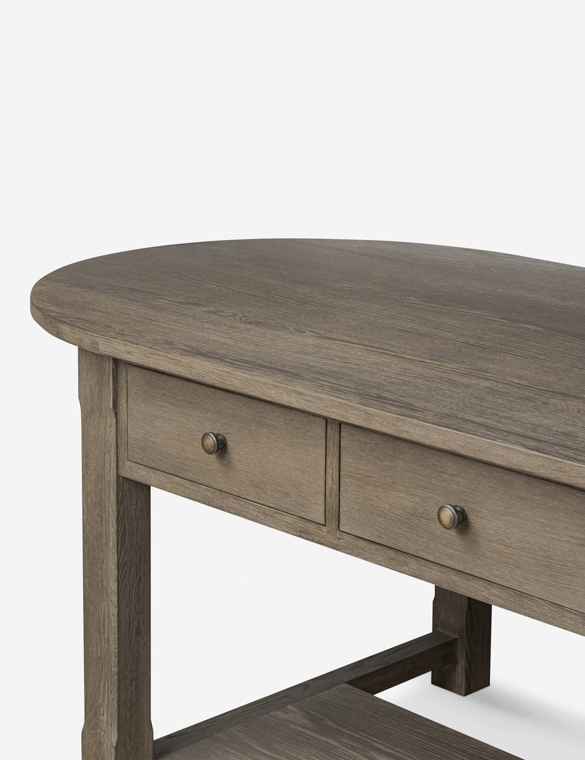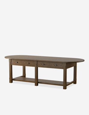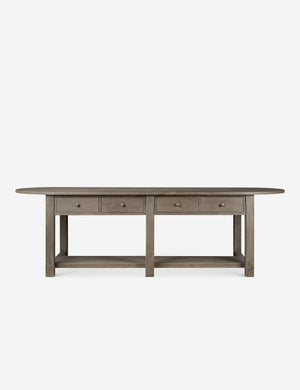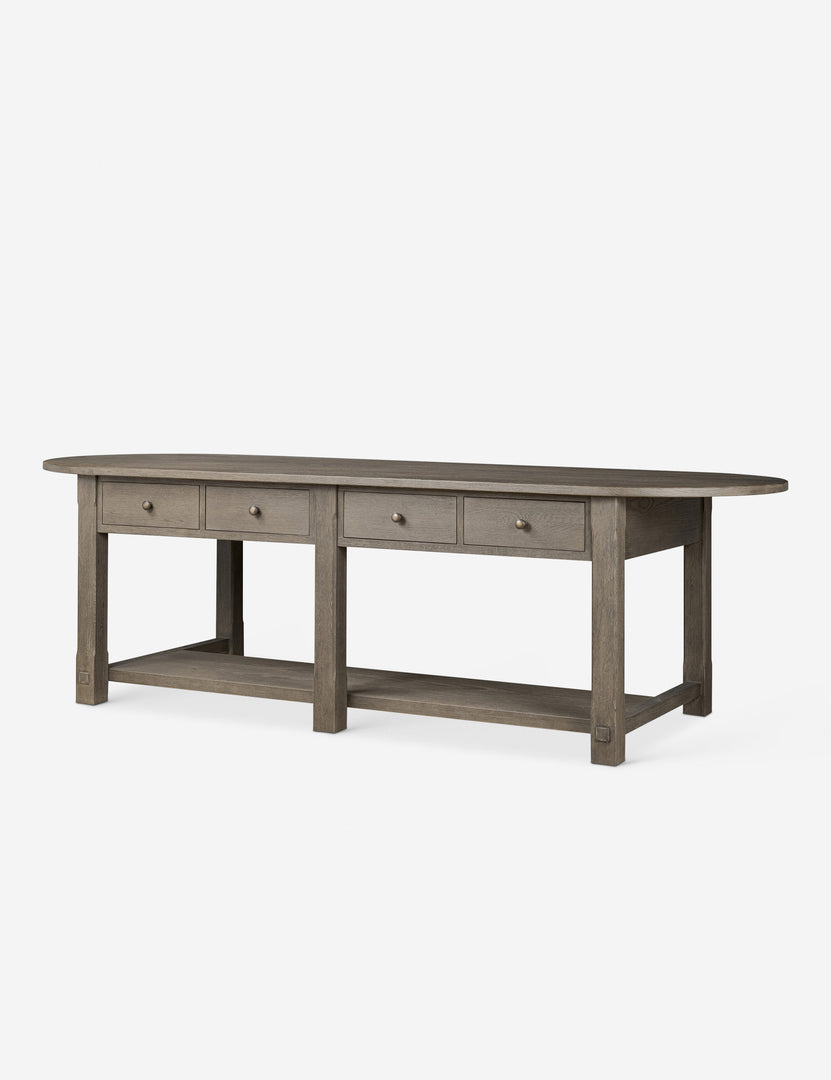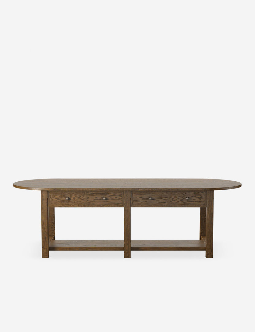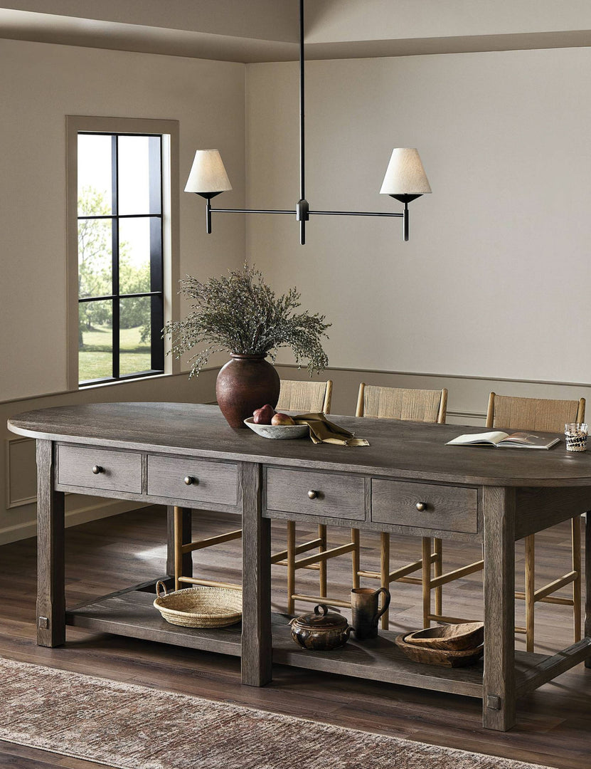 Four Hands brings their exceptional craftsmanship to a timeless collection rooted in Amber Lewis' perennial California style. Create more space for storage and prep in your kitchen with the Elise island. The robust wood construction features a partial-width lower shelf, an extended end and four drawers with a classic feel.