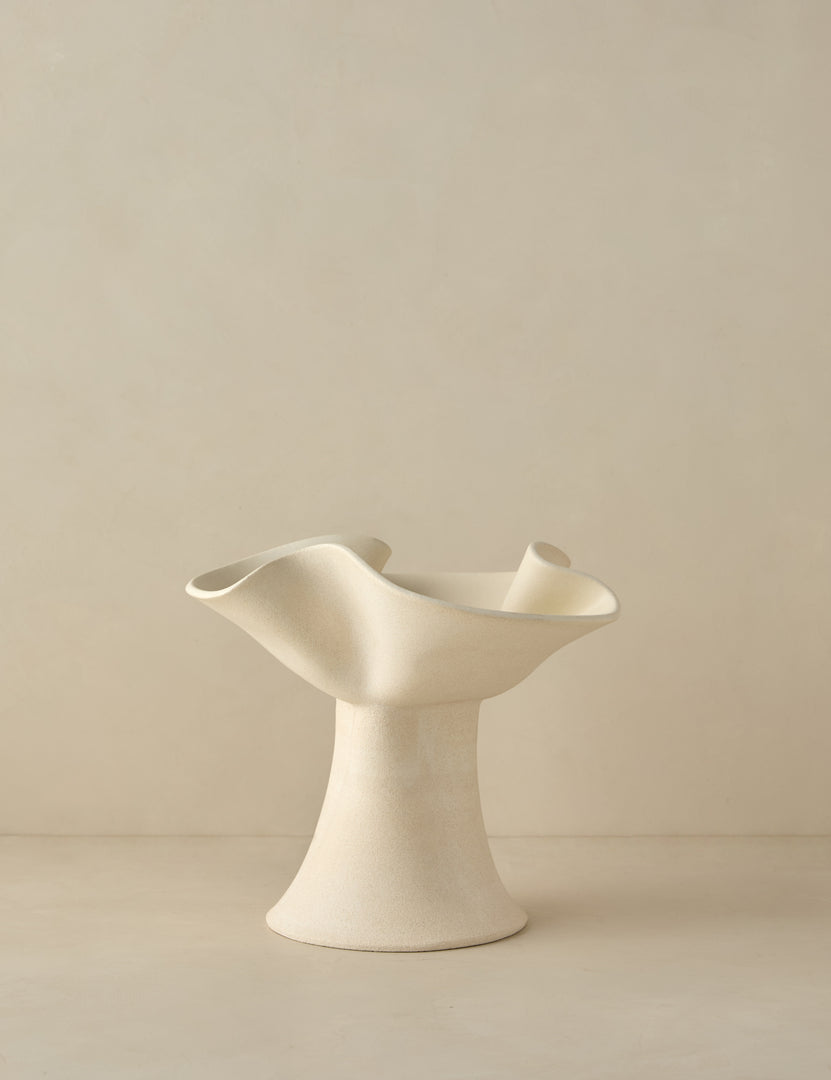 Add a dimension of drama to your tabletop curation with this sculptural pedestal bowl. The gracefully folding lines make this piece an objet d'art that can stand alone or serve as an elevating catchall for small items like matchbooks or jewelry.