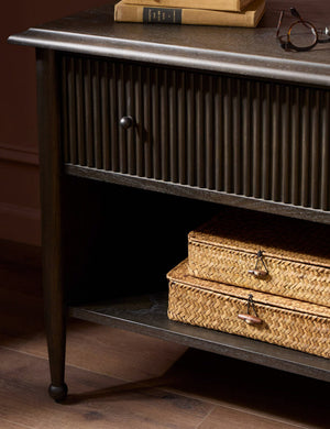 Four Hands brings their exceptional craftsmanship to a timeless collection rooted in Amber Lewis' perennial California style. Vertical reeding and tapered legs bring subtle depth to this nightstand while keeping the profile clean and composed. Beside your bed, this modern nightstand adds refined texture with the perfect touch of storage.