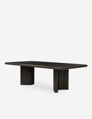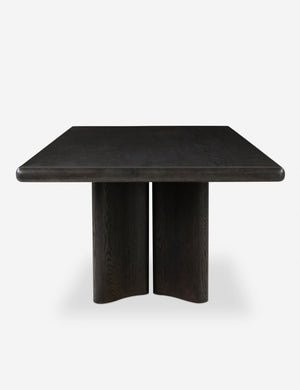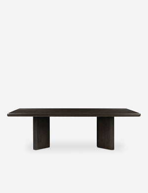 Made from reclaimed French oak, the Elsen dining table brings grand scale and timeless texture to the space, finished in a deep espresso tone. Rounded corners and a softly sculpted edge balance its generous proportions with an inviting silhouette. This table makes a striking anchor for both everyday meals and entertaining.