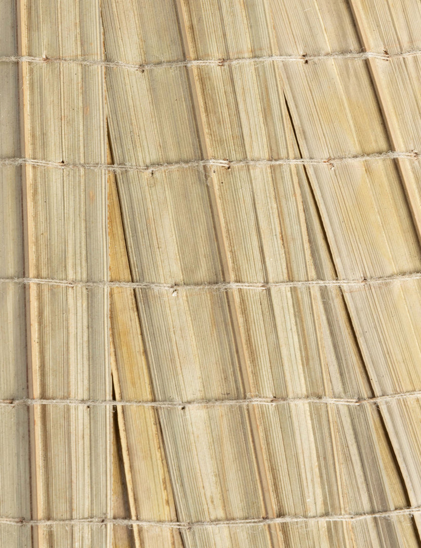 A light sand finish and woven palm shade bring a coastal feel to this Talavera table lamp. We love the lamp's organic shape and neutral tone for creating layered light in a grounded space, so we suggest styling this piece in a tonal living room.