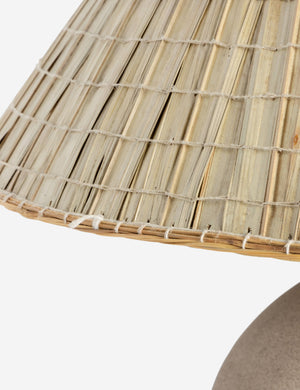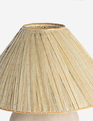 A light sand finish and woven palm shade bring a coastal feel to this Talavera table lamp. We love the lamp's organic shape and neutral tone for creating layered light in a grounded space, so we suggest styling this piece in a tonal living room.