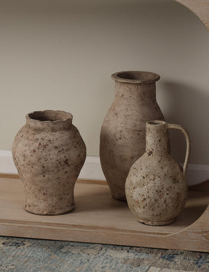 With rustic texture and timeless form, the Etto collection offers the look of a vintage market find. Artisan crafted with a weathered finish featuring subtle variations, each vase brings organic character to your space, equally striking on its own or styled with a few thoughtfully arranged dried stems.