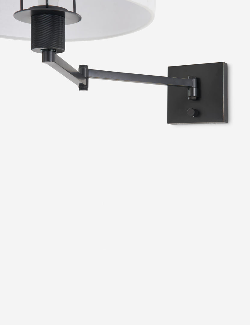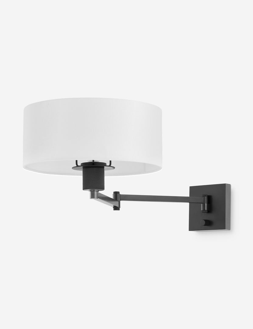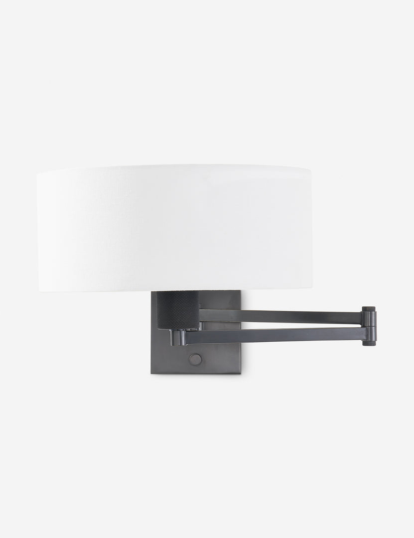 Functional lighting can still be a design moment. We love the marriage of form and function in the Evelina sconce. This modern sconce light's swing arm design is perfect for a bedside or workspace, while a linen drum shade offers radiance and warmth with transitional appeal.