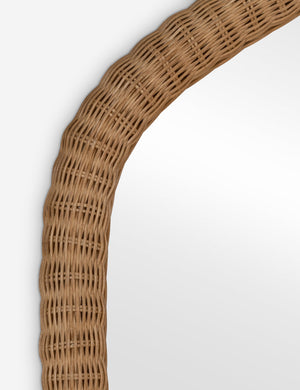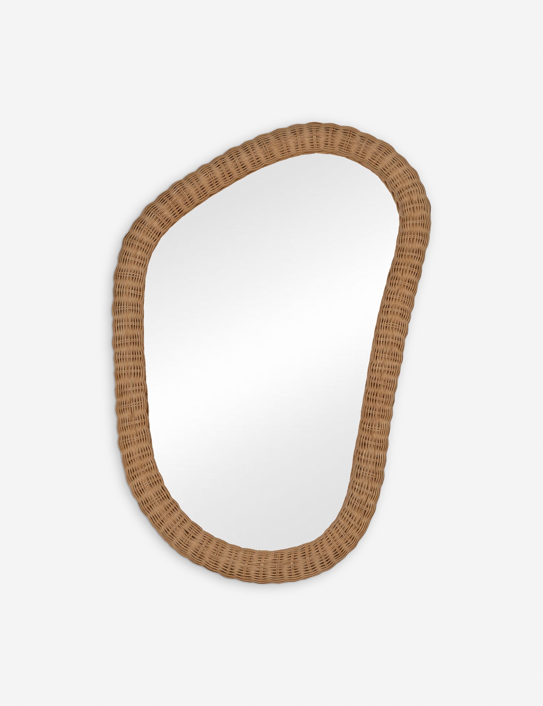 The Evelyn mirror by Megan Molten adds a touch of wicker to your wall decor. Its organic silhouette styles a modern look, perfect for an artfully effortless room design. The thick rattan frame brings a natural texture update to any space.