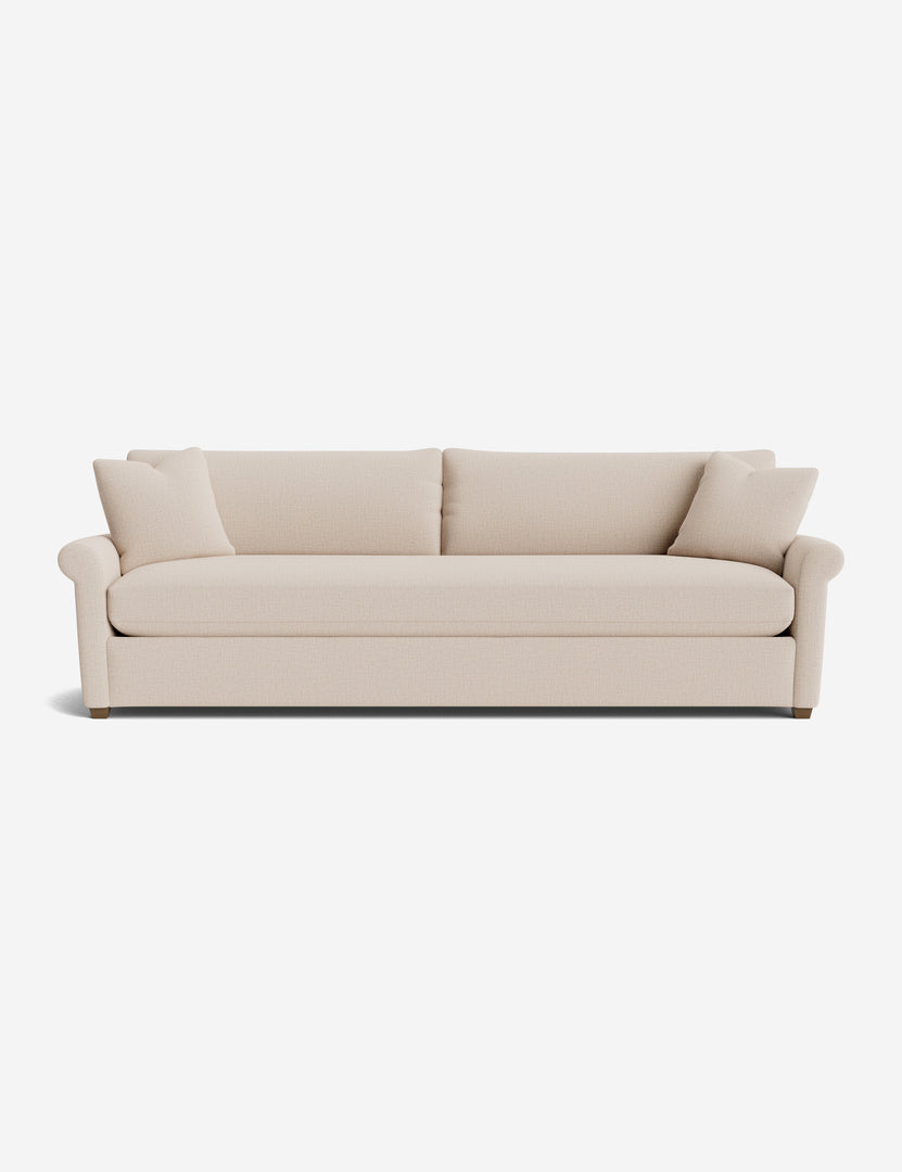 Modern in comfort, classic in character. Our Everdeen sofa is made for transitional appeal with its rolled arms and sink-in cushions. This couch's relaxed look and feel are perfect for a tailored space that can be dressed up for hosting or toned down for easy lounging.