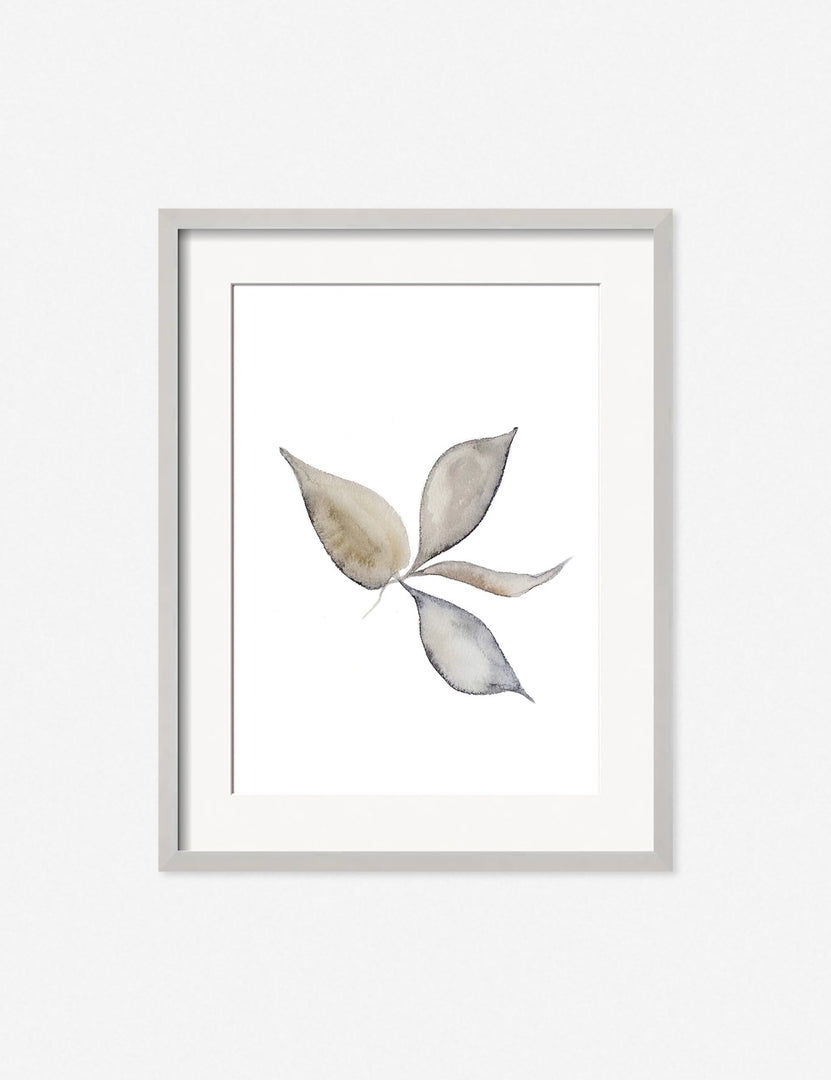 A crisp botanical silhouette centered on a white field inspires minimalist appeal in this wall art print. The tonal watercolor palette is a versatile fit for grounding art wall decor whether you are looking for a serene balance or a focal piece for your home workspace.