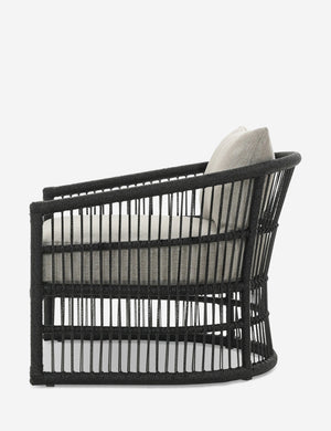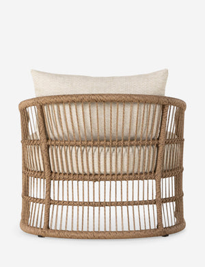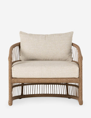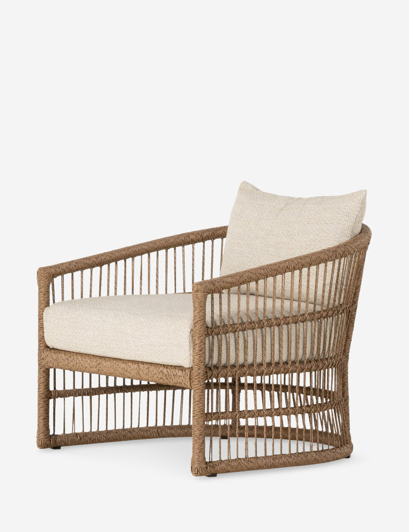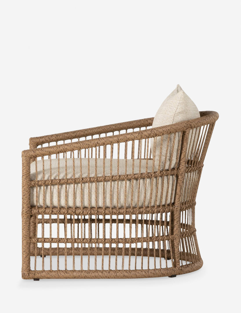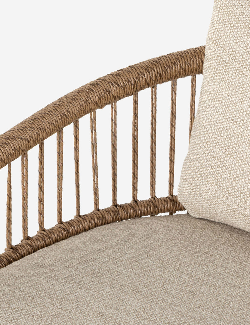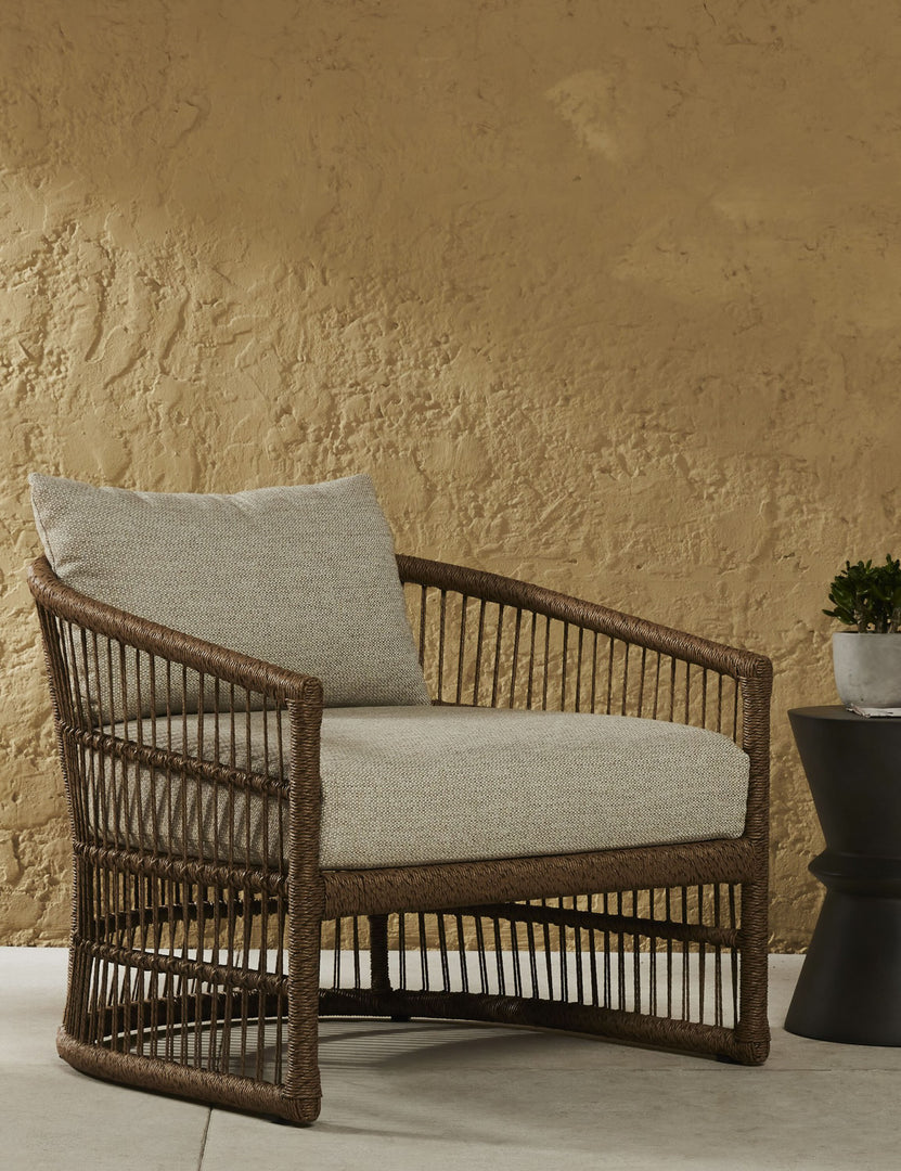 A soft silhouette and open-weave design give the Fahari chair its effortless charm. Wrapped in durable fibers and topped with performance-upholstered cushions, this outdoor lounge chair delivers laid-back comfort with a chic edge—perfect for sunlit patios or shaded garden corners.