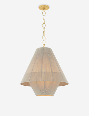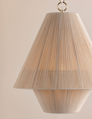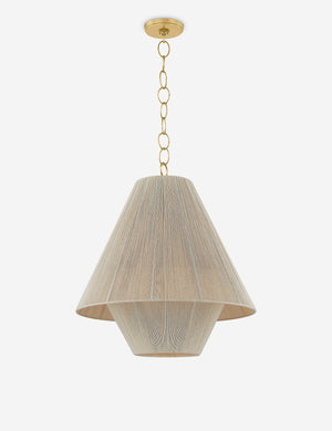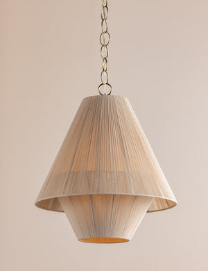 Fasano captures elegance in motion with its layered, string-wrapped silhouette. Two conical shades overlap to create a soft, dimensional glow, offering texture and warmth from above. Suspended from an antique brass chain, this pendant brings refined ceiling lighting to dining rooms, bedrooms, or intimate corners.