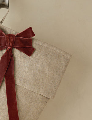 Our Felina stocking features velvet trim and bow for a warm touch that feels simply refined. Hang it from your banister, bookshelf, or anywhere you want to add a little holiday charm.