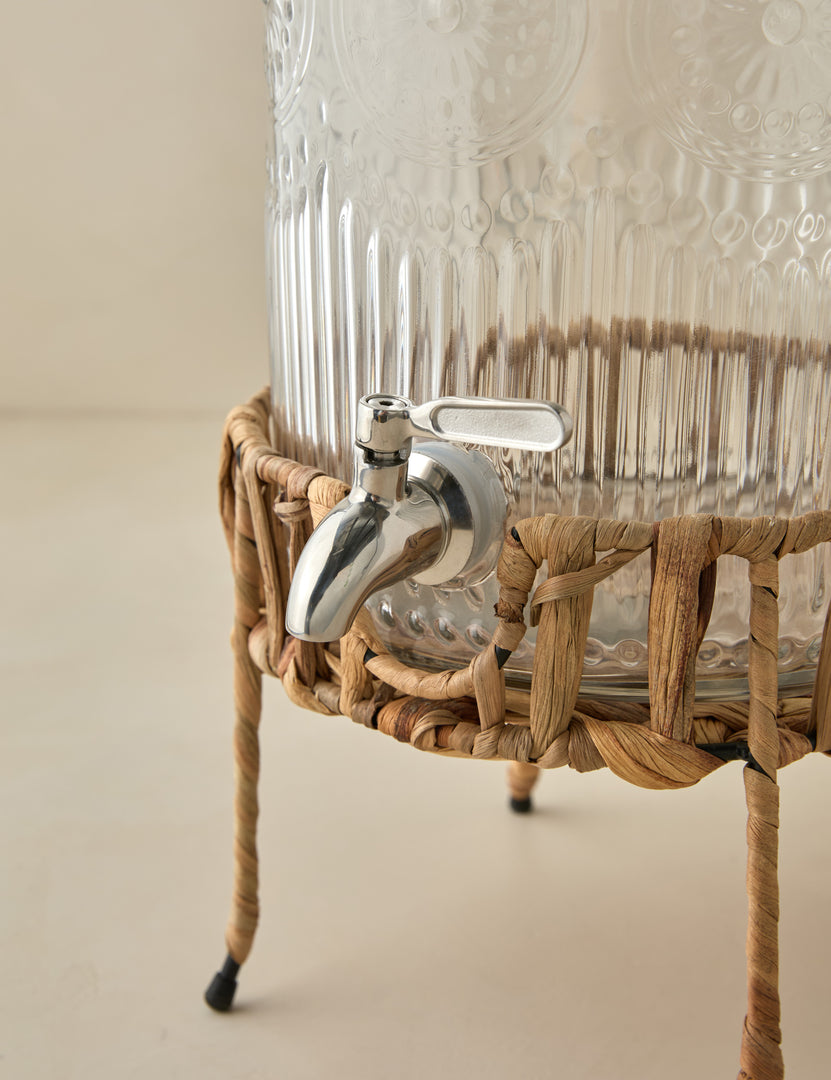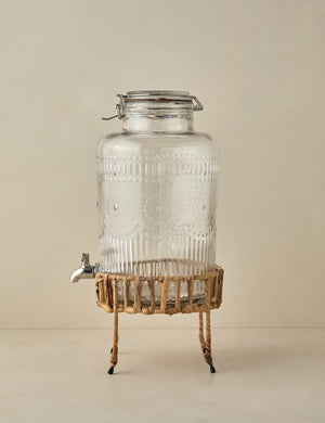 Hosting is all about the personal touches you bring to hospitality. Elevate a patio hangout or smarten up your next occasion with this beverage dispenser featuring an 8-liter vessel with a stainless steel spout. From the tactile glasswork with floral accents to the textural leaf wrapping over the sturdy metal stand, this is the perfect piece to punch up the party.