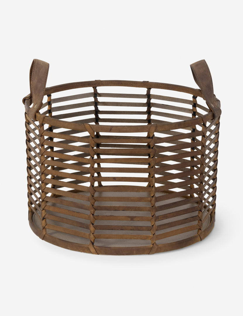 - Blending form and function, this handsome basket is woven by hand from sturdy natural leather. The Finn is the perfect functional decor piece for your home. This basket can stand alone as sculptural decor thanks to the intricate pattern woven into its leather base when not holding blankets, magazines, or your pet's toys.