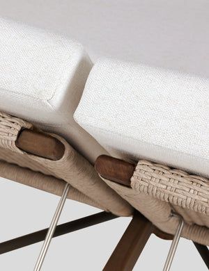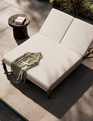 Four Hands brings their exceptional craftsmanship to a timeless collection rooted in Amber Lewis' perennial California style. Take luxurious lounging to the next level with a stylish and inviting indoor / outdoor chaise lounge. Adjustable backrests pair with woven details to create a double chaise with plenty of space for a couple to enjoy the summer sun.