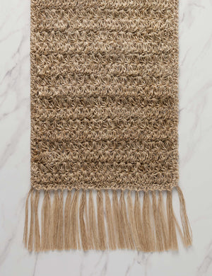 This table runner offers a natural fiber touch, expertly crafted by artisan hands. Made in Colombia with sustainable fique fibers, it grounds your tablescape in organic texture with an intricate weave and generous fringe. Powered by People works with makers from all over the world to bring small-batch, responsibly made goods to market, including Tallo De Olivo, whose handmade pieces bring a unique touch to everyday home decor.