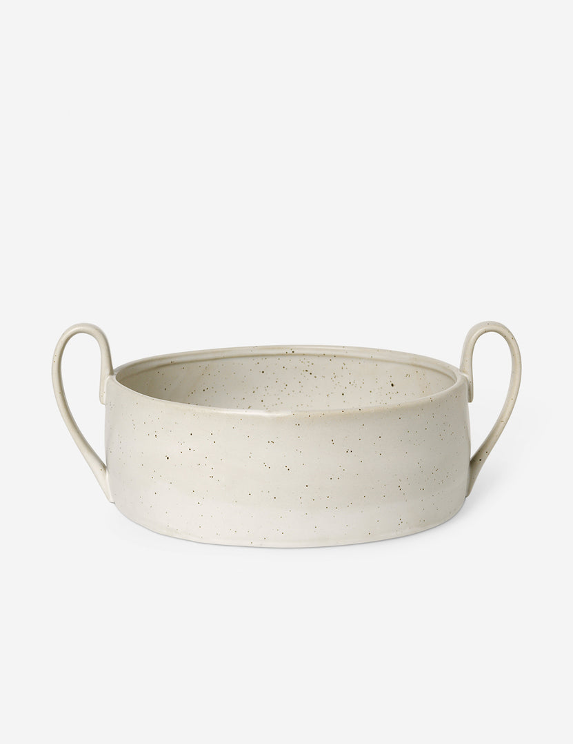 The Flow collection sets a table that invites guests in with grounding warmth. This large dish features a deep basin with elongated handles, perfect for anchoring your tablescape or serving up a culinary masterpiece. The semi-matte glaze adds a stylish finish, bringing a modern edge to the stoneware's organic form.